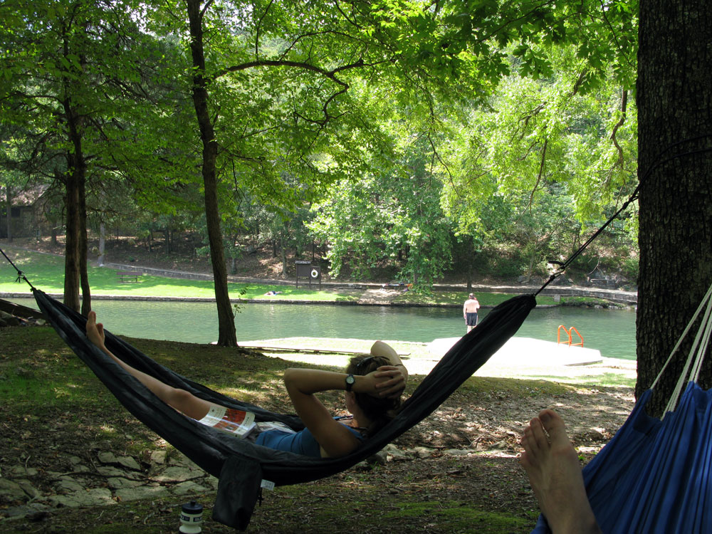 The next day was reserved for doing absolutely nothing. Maybe it was a laziness induced by the loads of Benadryl cream I lathered on my legs that morning (just a common heat rash), but it turned out to be an afternoon of pure sloth hanging out in our hammocks by the swimming hole, reading books, napping and chatting with the locals. Although Pat finished the day with a short trail ride through the Arkansas hill country.