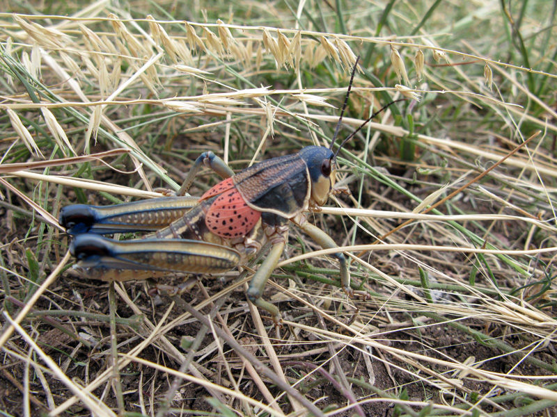 Leaving Alpine, we headed north towards the Davis Mountains and stopped at Fort Davis National Park, a historic Fort established in the mid 19th century to safeguard travelers along the old San Antonio to El Paso trail. It was a chilling replica of the Fort as it was in 1885, with only a few rooms furnished and remains of other buildings.  We hiked up the hills around the fort and heard the traditional bugle calls played every half hour or so. The place was packed with enormous grasshopers!