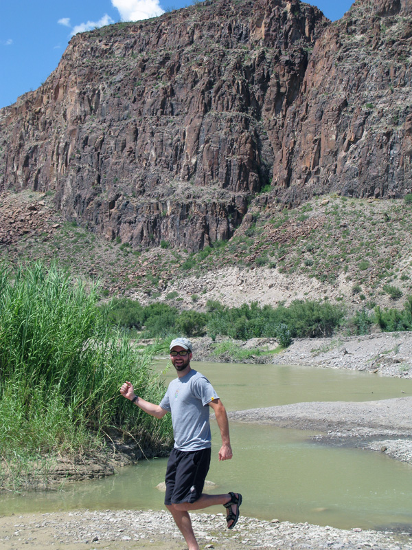 So close to the border, we decided to get as close as possible and drove down the Rio Grande from Presidio to Lajitas (after eating the famous green enchiladas at La Escondida – recommended by Tim at Chinata Hotsprings).  Voted one of the most beautiful roads in North America, the River Road did not disappoint.  We followed the picturesque canyons and dipped our feet in the river.  Our only interaction with the US Border Patrol was heading back North to Alpine.  Sergeant Rodriguez’ only remarks were “so you’re from Maryland huh?  I take it you’re US citizens?  OK – go on through.”  No checking for passports or anything.  We reunited with a few friends back at the Lost Alaskan in Alpine, and after our week-long detour through West Texas, headed back north to complete one last feat in Texas – climb the highest peak in the state in the Guadalupe Mountains!