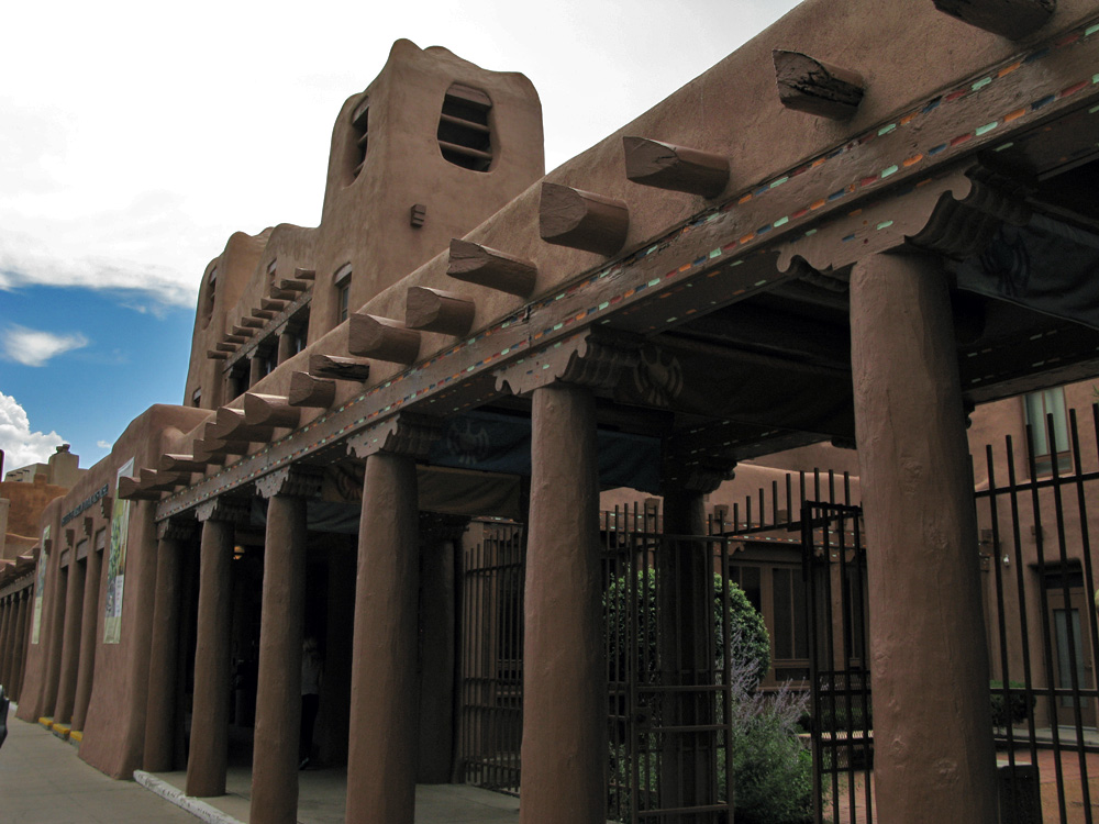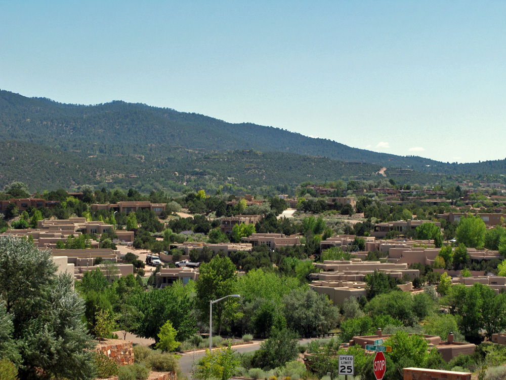 We decided to take a more scenic road to Sante Fe (we always choose the scenic route) and hopped off Interstate 25 to make our away along the Turquoise Trail National Scenic Byway, a drive through the mining towns of Golden, Madrid and Cerillos, where a community of artists have set up shop to display their handiwork. The name originated from the blue-green turquoise that was first mined by the early Pueblo people (900 A.D). We made a quick stop in Madrid (with an American emphasis on “Ma” not “drid” – to my surprise being so close to a Spanish speaking country). We have to admit that we were mostly lured by the National Guard helicopters circling the town. We asked a few locals if there were criminals on the loose. The answer: a yearly ritual searching for plants – aka marijuana. Interesting use of resources we thought.