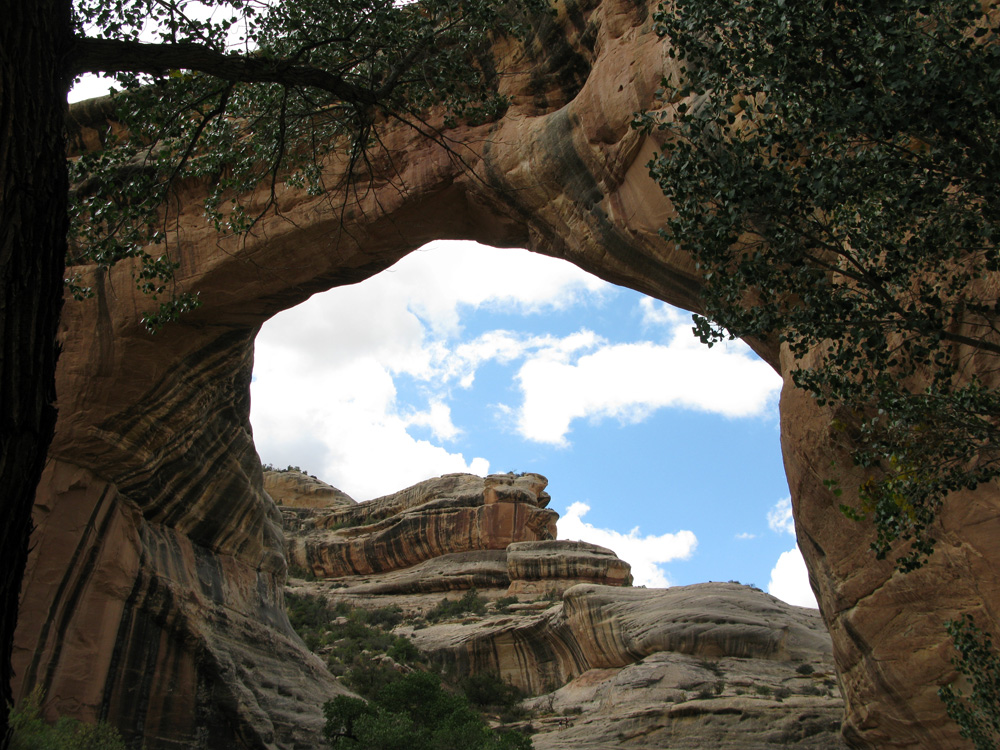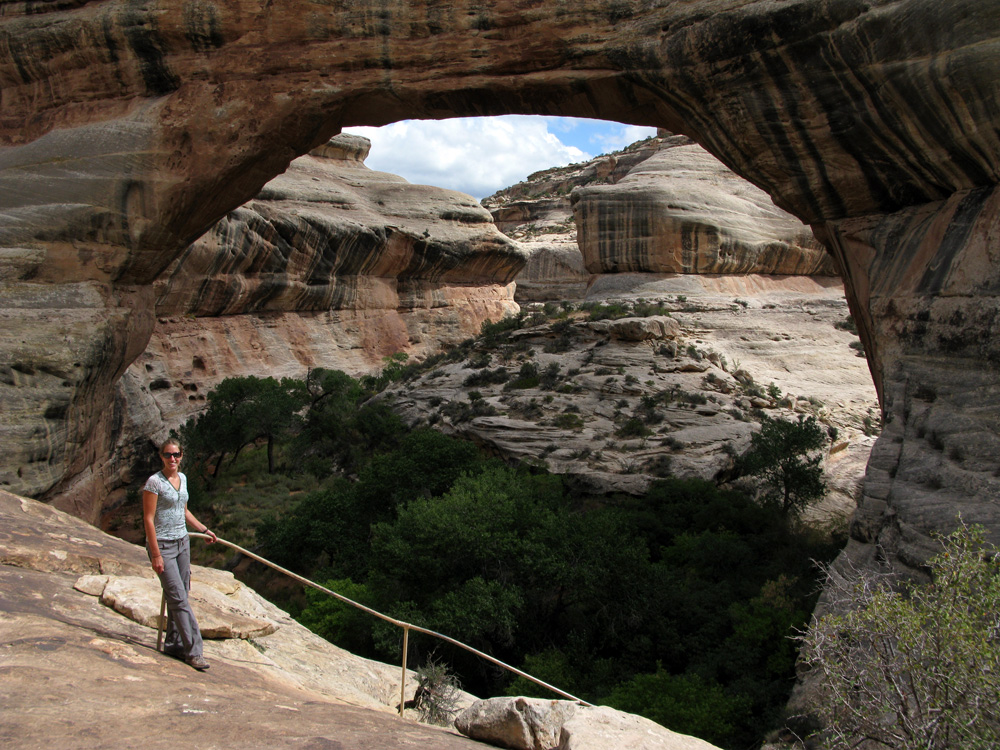 We departed Mesa Verde and Colorado for our next area of exploration, southeast Utah. Utah simply rocks. There is no place like it really; each day brings us to another natural wonder and usually another National Park. Our first stop was at the Hovenweep National Monument to tour some more cliff dwellings and ruins, really impressive structures all around the rim of a gorge. After Hovenweep we drove through the spectacular “Valley of the Gods” area. We had hoped to camp there for the night but high winds made us change our minds and move on. That night we found a free spot near the Natural Bridges National Monument. The next morning we hiked down to the largest bridge, Sipapu.