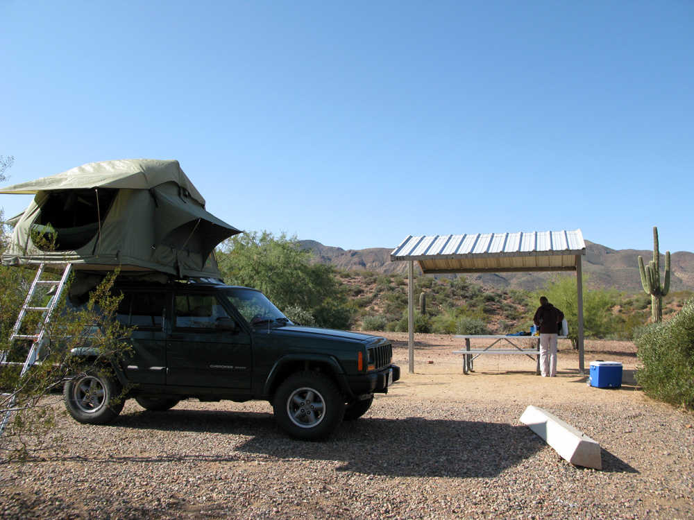 The following day we continued northward back towards Phoenix and settled at our last campsite in the US!  We found a great spot on Roosevelt Lake and enjoyed our last nights with the Jeep.  Pat went for one last mountain bike ride around the lake before packing up the bikes for good. We set up hammocks and relaxed as we watched an unusual haze creep over us, an anomaly for Arizona.  Although we didn’t get a rain storm, we certainly got a wind storm, and spent our last night listening to our tent flapping in the wind.  We soon accepted it as music to our ears, as we embraced the warmth and comfort of our humble roof-top home.