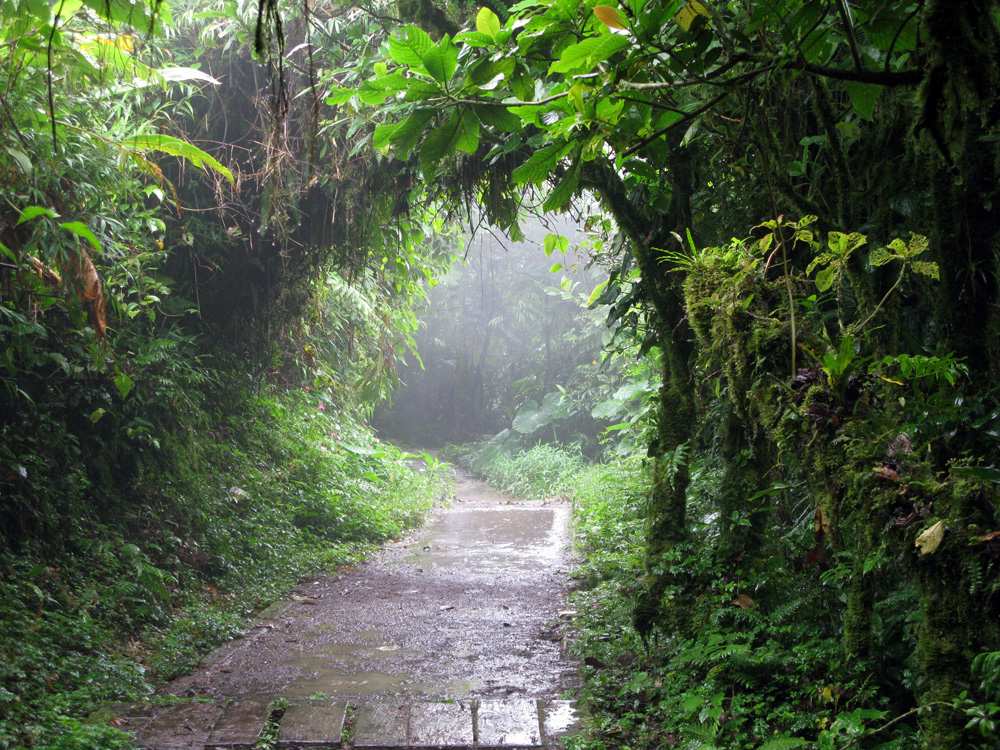 The trail through the veritable cloud forest at Monteverde.
