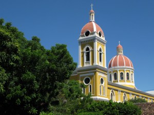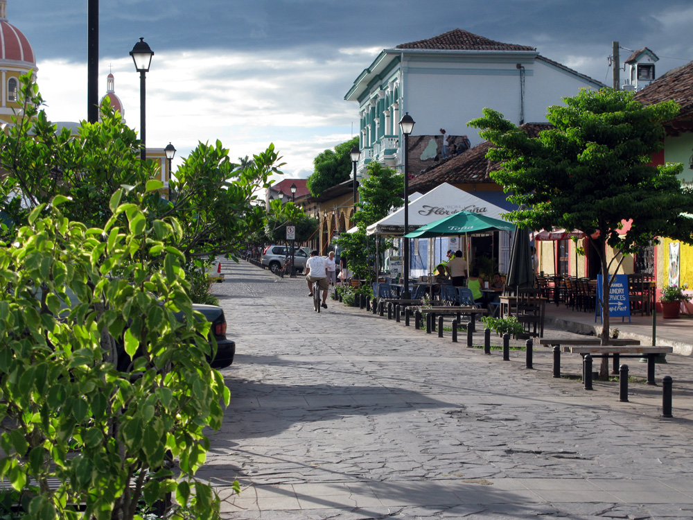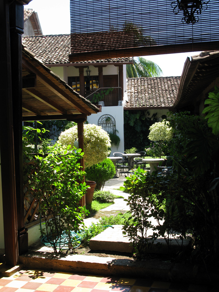 Since we were so close to the border with Nicaragua, we decided to cross over and check it out.  We had been hearing lots of accolades from other travelers who were praising unspoiled territory, cheap prices, less gringos, beautiful colonial towns, etc. So we went, and after an hour and half at the border (which went relatively smoothly since a gracious Canadian acted as our guide), a chicken bus (there was a rooster), touts and vendors selling about most anything (our favorite – water in plastic bags where you rip off a corner and suck it down – very sanitary), and a short moto rickshaw ride (the bus dropped us off at an intersection of the highway, so we had no choice), we finally arrived in Granada – a beautiful colonial town indeed with impressive churches, Spanish architecture and courtyards hiding gorgeous gardens. A sort of silver lining over what is, without a doubt, still a developing country.  We spent three days exploring the city, sitting by these lovely hidden courtyards, and of course visiting nearby volcanoes.