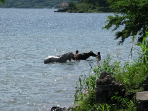 Just some horses bathing in the lagoon, Lago de Apoyo.