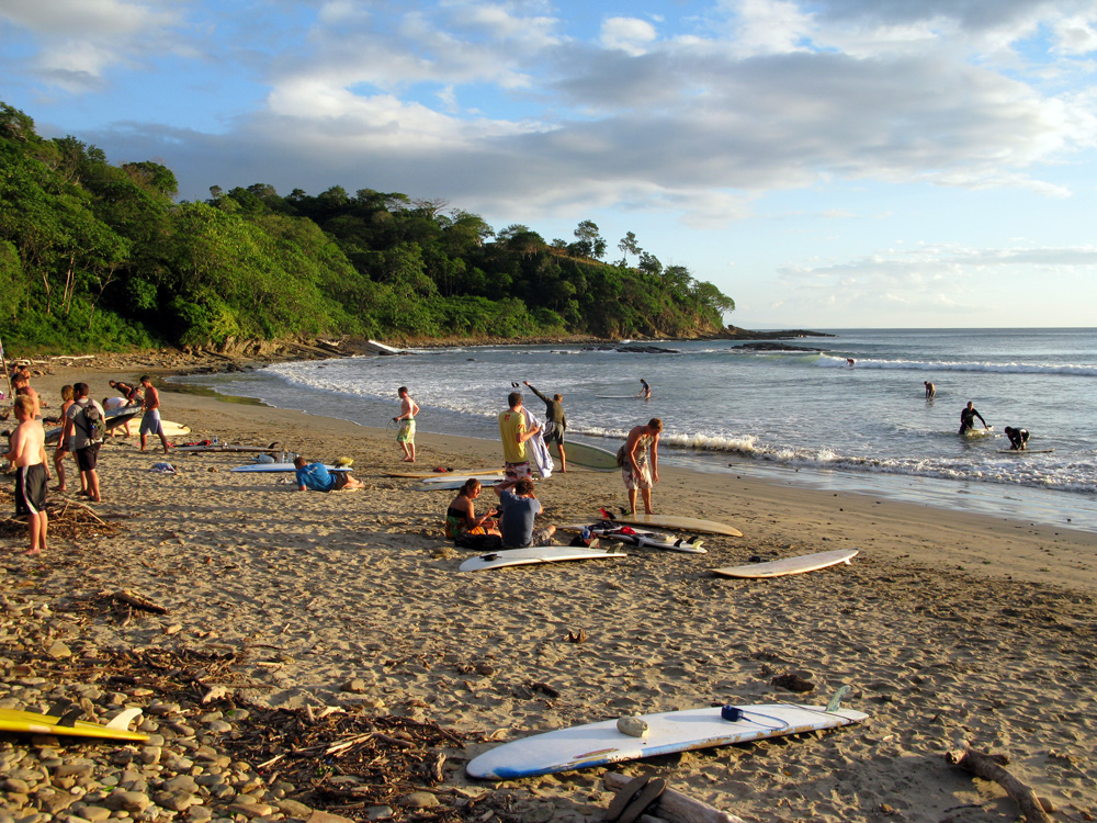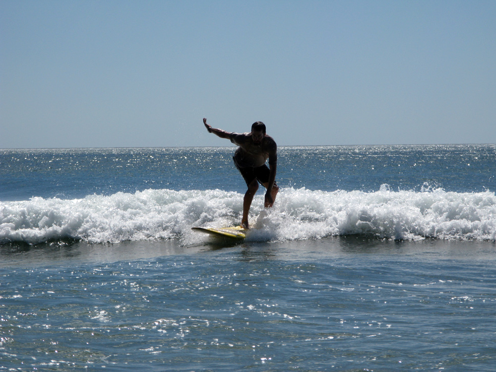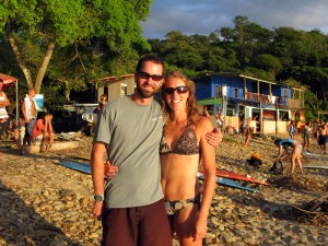 Pat and I spent the next 2 days doing absolutely nothing.  We retreated to a comfortable bungalow with a lake-side view, settled ourselves in hammocks reading books, listening to the tide, and nursing our sore muscles back to health. When we were strong enough to move on, we took a ferry back to the mainland and made our final stop in Nicaragua at San Juan del Sur – a lovely and popular beach on the Pacific with lots of good restaurants and surf shops. We quickly jumped on the bandwagon and tried our hand at surfing on another beach just north of San Juan del Sur called Madera. We spent all day playing in the water, catching waves (Pat did most of the surfing, I just body boarded a few times), eating fish tacos and talking to other gringos doing the same.  It was an extraordinary day and a perfect culmination to our sojourn in Nicaragua.